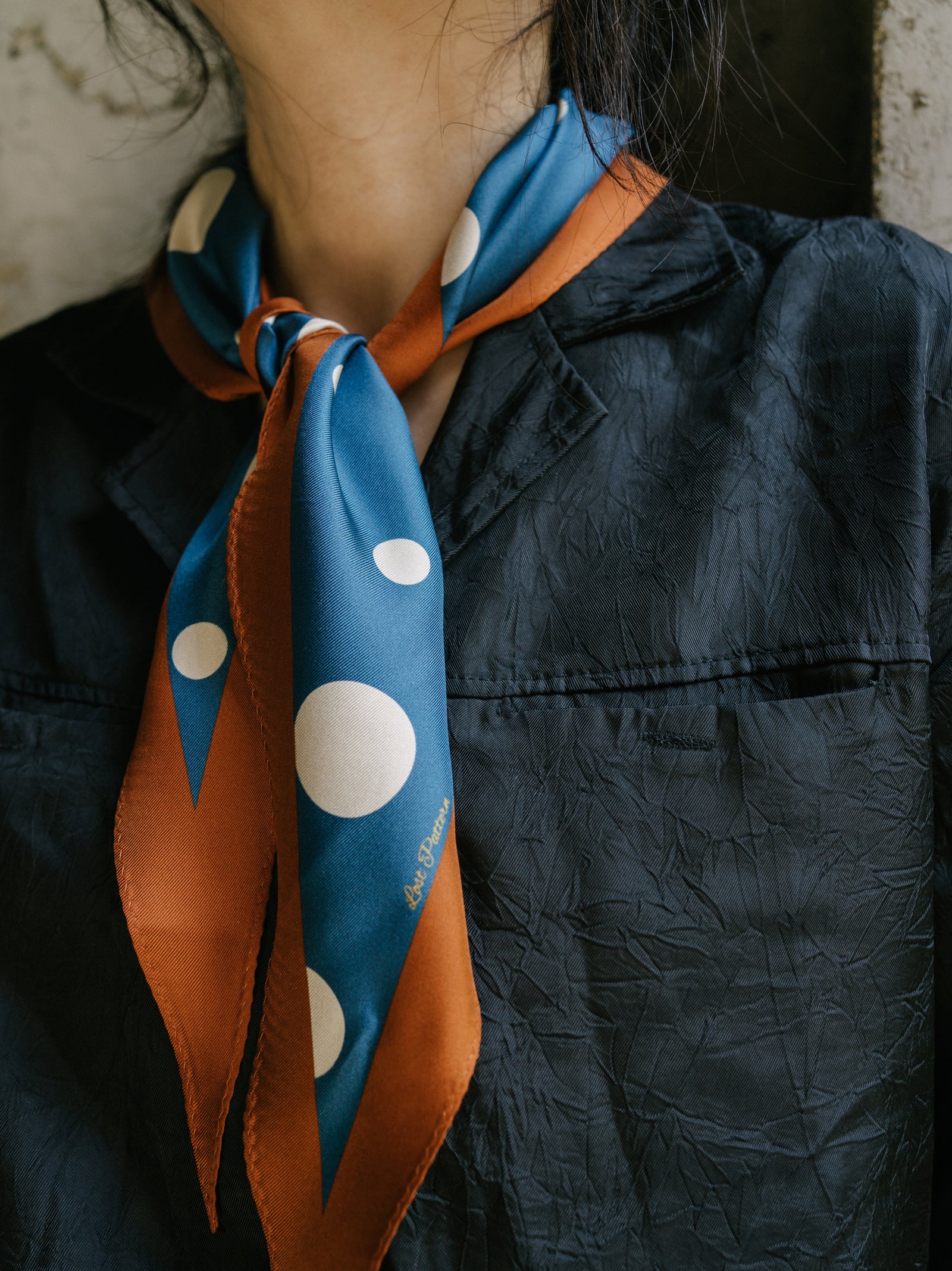 “Retro Polka” Silk Diamond Neckerchief – Salted Caramel