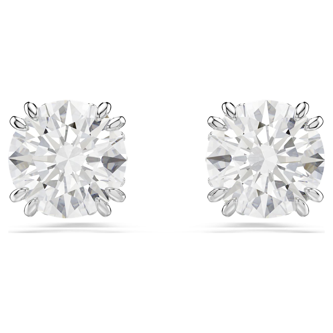 Stilla stud earrings – Round cut, White, Rhodium plated