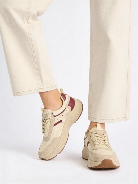 LUNA BLU Beige Suede-Detailed Lace-Up Sneakers (Rs. 1999)